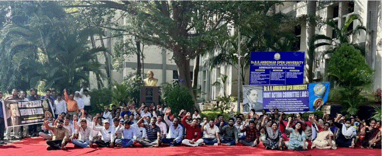 డా బి ఆర్ అంబేద్కర్ సార్వత్రిక విశ్వవిద్యాలయంలో 58వ రోజుకు చేరిన ఉద్యోగుల నిరసనలు హైదరాబాద్: డా. బి. ఆర్. అంబేద్కర్ సార్వత్రిక విశ్వవిద్యాలయ పది ఎకరాల స్థలం జవహర్ లాల్ నెహ్రు అర్కిటెక్చర్ అండ్ ఫైన్ ఆర్ట్స్ విశ్వవిద్యాలయానికి (జె.ఎన్.ఏ.ఎఫ్.ఏ.యూ) … Continue reading BRAOU: వీసీని కలిసిన జేఏసీ నేతలు, భూ కేటాయింపు ప్రభుత్వ లేఖను ఉపసంహరించుకోలని విజ్ఞప్తి