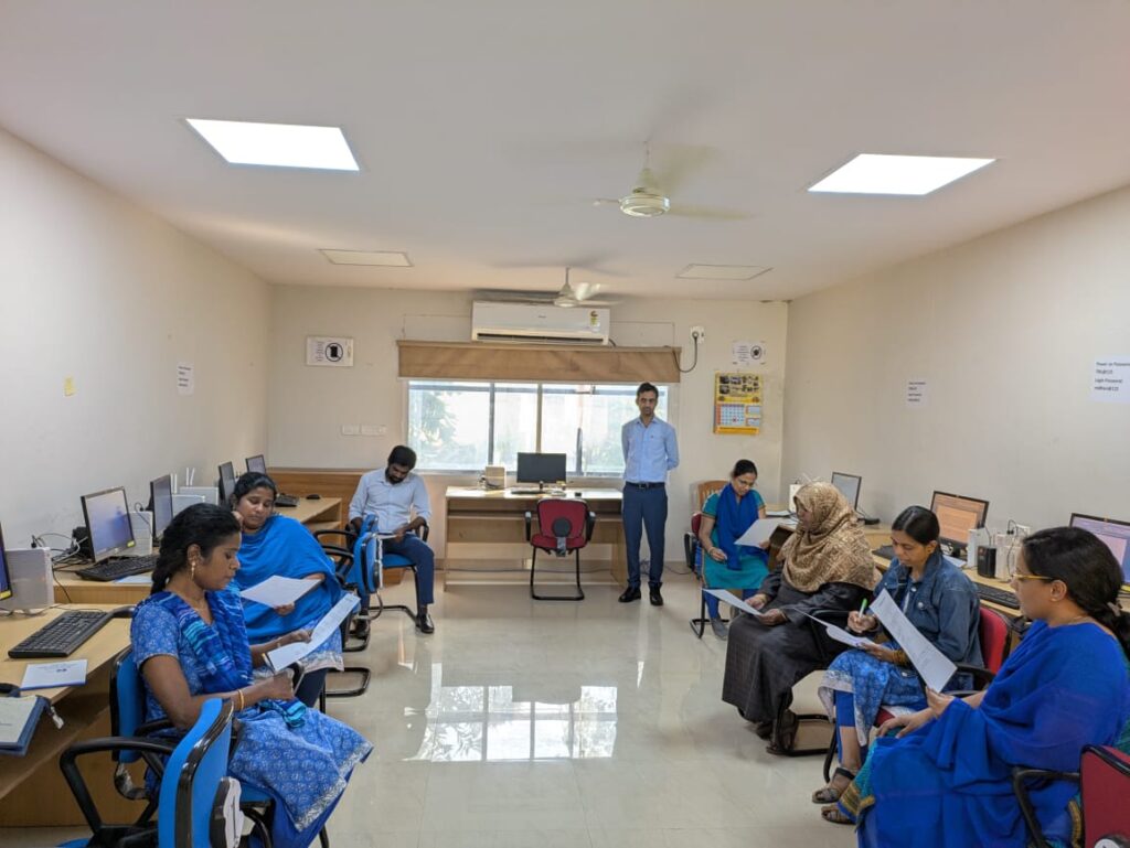 हिंदी टंकण पर केंद्रित हिंदी कार्यशाला का संचालन हिंदी अनुभाग के डॉ. विकास कुमार आज़ाद, कनिष्ठ हिंदी अनुवादक द्वारा किया गया। उन्होंने प्रतिभागियों को कंप्यूटर पर लिप्यंतरण (ध्वन्यात्मक) पद्धति का उपयोग करने की जानकारी दी और अभ्यास करवाया।