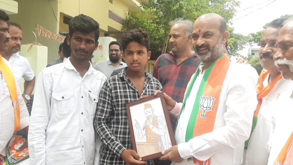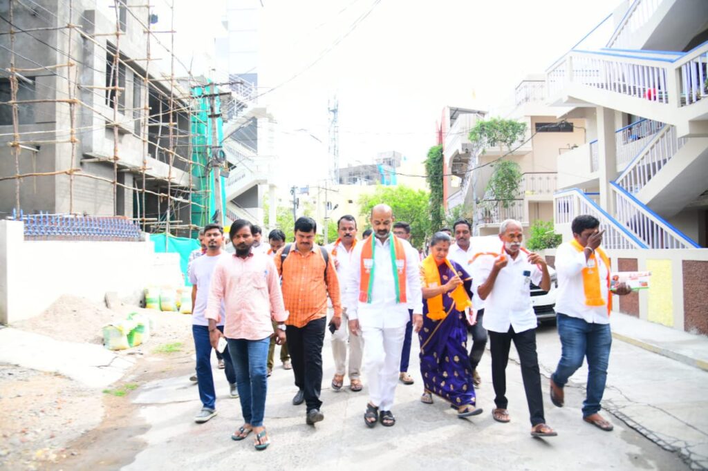 ఇంటింటికీ తిరుగుతూ మోదీ పాలనపై కరపత్రాలు అందిస్తూ, స్టిక్కర్లు అంటిస్తూ బీజీబిజీగా గడిపిన బండి