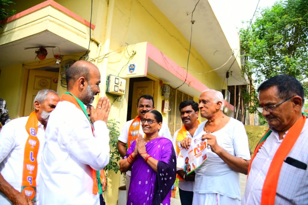 -ఇంటింటికీ బీజేపీ పేరుతో సొంత వార్డులో ప్రచారం చేస్తున్న బండి సంజయ్
