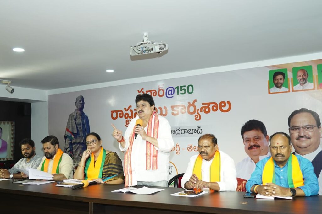 హైదరాబాద్ : భారతీయ జనతా పార్టీ రాష్ట్ర కార్యాలయంలో బిజెపి తెలంగాణ రాష్ట్ర అధ్యక్షులు ఎన్. రాంచందర్ రావు అధ్యక్షన సర్దార్ @150 రాష్ట్రస్థాయి కార్యశాల ఘనంగా జరిగింది. ఈ సందర్భంగా పార్టీ శ్రేణులకు రాంచందర్ రావు దిశానిర్దేశం చేశారు.