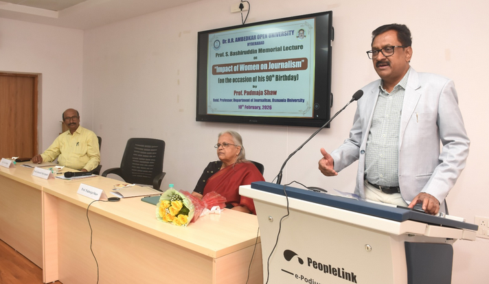 Hyderabad : Dr. B. R. Ambedkar Open University organized Prof. S. Bashiruddin Memorial Lecture on “Impact of Women on Journalism” at its campus as part of 90th Birth anniversary of Prof. S. Bashiruddin, Former Vice-Chancellor on Tuesday. Prof. Padmaja Shah, Retired Professor, Department of Journalism, Osmania University was attended as Chief Guest for the program and delivered a lecture on “Impact of Women on Journalism”.
