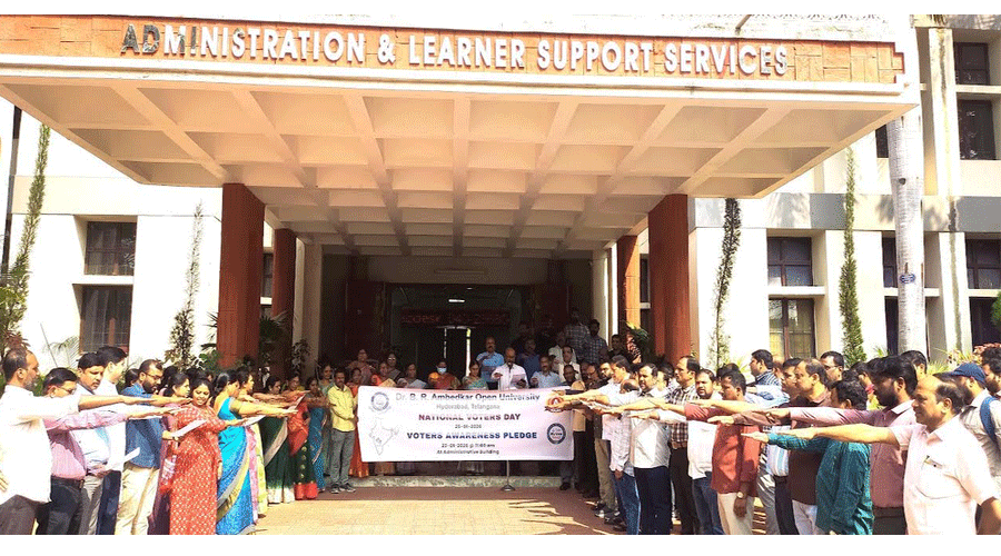 హైదరాబాద్ : తెలంగాణ రాష్ట్ర ప్రభుత్వ ఆదేశాల మేరకు డా. బి. ఆర్. అంబేద్కర్ సార్వత్రిక విశ్వవిద్యాలయంలో శుక్రవారం ‘ఓటర్ల అవగాహన ప్రతిజ్ఞ’ కార్యక్రమాన్ని నిర్వహించారు. జనవరి 25 న జాతీయ ఓటర్ దినోత్సవాన్ని పురస్కరించుకొని జాతీయ ఎన్నికల సంఘం ఆదేశాల మేరకు రాష్ట్ర ప్రభుత్వం అన్ని ప్రభుత్వ ప్రధాన కార్యాలయాల్లో శుజ్రవారమే ఈ కారక్రమాన్ని నిర్వహించాలని పేర్కొన్నారు.