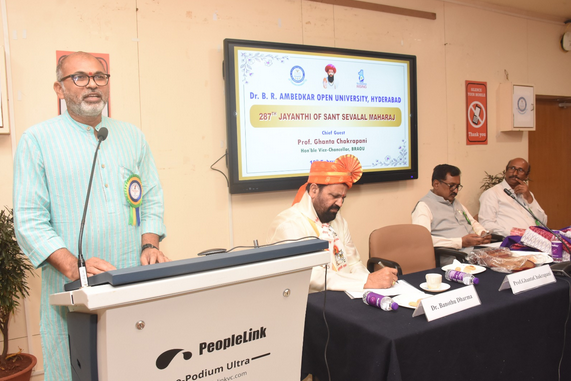 Hyderabad : Dr. B. R. Ambedkar Open University celebrated Sant Sevalal 287th birth anniversary at its campus on Thursday. Prof. Ghanta Chakrapani, Vice Chancellor said that Sant Sevalal was a great man who laid the foundations of the ideology of non-violence to show the elevation of the Banjara caste to the world. Prof. Chakrapani, described Sevalal as a great humanitarian and a deity worshipped by the Banjaras. He said that he worked for the welfare of the Banjaras and their self-respect. Sant Sevalal lived an ideal life centuries ago and called on the youth to take Sevalal as an ideal, was recognized as a renowned environmentalist two hundred years ago and his foresight can be understood.