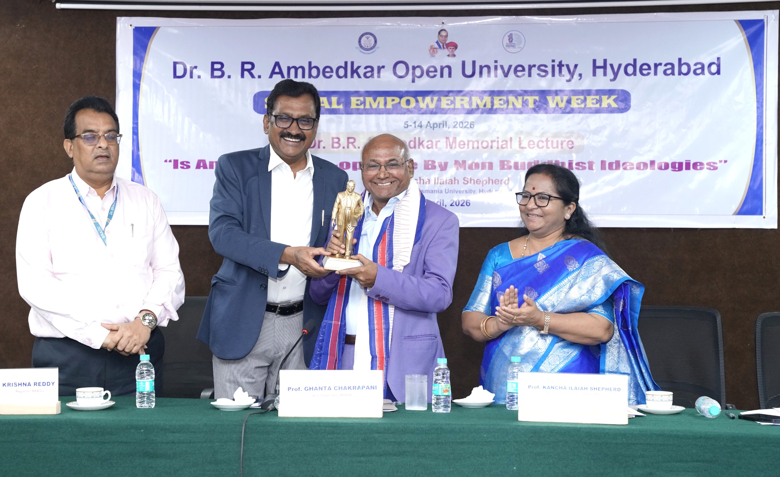 హైదరాబాద్ : డాక్టర్ బి. ఆర్. అంబేద్కర్ అనుసరించిన బౌద్ధం, విద్య, సాంకేతికత తోనే సామజిక మార్పు సాధ్యమని అంబేద్కర్ సార్వత్రిక విశ్వవిద్యాలయం వైస్ ఛాన్సలర్ ప్రొ. ఘంటా చక్రపాణి అభిప్రాయపడ్డారు. సామాజిక సాధికారత వారోత్సవాల్లో భాగంగా, “బౌద్ధేతర భావజాలాలు అంబేద్కర్‌ను తనవైపు తిప్పుకోగలవా” అనే అంశంపై డా. బి. ఆర్. అంబేద్కర్ స్మారక ఉపన్యాసం నిర్వహించారు. ఈ కార్యక్రమానికి విశ్వవిద్యాలయ వీసీ ప్రొ. ఘంటా చక్రపాణి ముఖ్య అతిథిగా పాల్గొని ప్రసంగించారు.