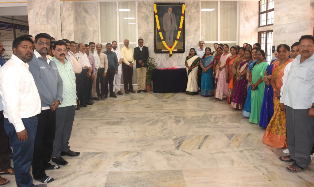 Prof. G.Pushpa Chakrapani, Director (Academic); Prof. E.Sudha Rani, GRCR&D Director; Prof. D. Rabindranath Solomon, Director EMR&RC; Prof. I. Anand Pawar, Director DMP; Prof. Pallavi Kabde, Director, UGC-DEB Affairs; Dr. Banoth Dharma,SC/ST Cell; Dr. Prameela Kethavath, Dr. Bhoju Srinivas, COE; Prof. P. Ramana, Director CSTD; all Directors, Deans, Heads of Branches, Teaching and Non-Teaching Staff Members, representatives of service associations and students garlanded the Dr. B. R. Ambedkar Portrait and offered rich floral tributes.