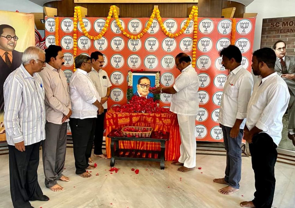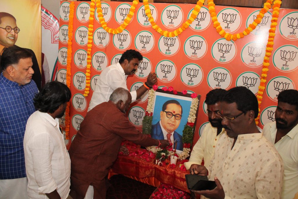 Dr B R ambedkar వర్ధంతి సందర్బంగా చిత్ర పటానికి నివాళులు అర్పిస్తున్న బీజేపీ రాష్ట్ర కార్యాలయంలో జాతీయ కార్యవర్గ సభ్యులు నల్లు ఇంద్రసేన రెడ్డి .బీజేపీజాతీయ కార్యదర్శి sc మోర్చా.ఎస్. కుమార్.రావుల రాజేందర్