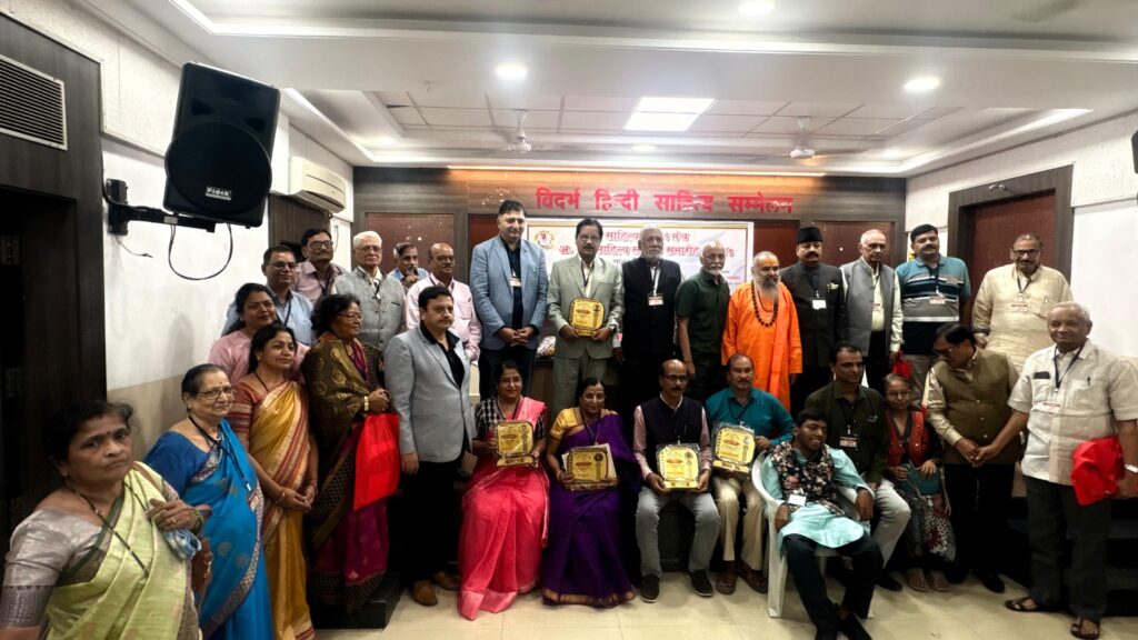 डॉ गिरी ने कहा, “साहित्य के बिना सभ्यता -संस्कृति शून्य है।उन्होंने अपने माता-पिता के नाम से 51000 रुपये पुरस्कार दिया जाएगा।” अध्यक्ष डॉ उपाध्याय ने साहित्यकार और साहित्य प्रेमियों को सम्बोधिन में डॉ राजेंद्र मालोकर, डॉ आभा सिंह और डॉ मधुलिका व्यास निर्णनायकों के मूल्यांकन की सराहना की। बिहार , दिल्ली , भोपाल , हैदराबाद , बंगलौर , केरला , मुंबई , राजस्थान , गुजरात , उत्तर प्रदेश , मध्य प्रदेश से विविध विधाओं पर प्राप्त 163 कृतियों में से 25 साहित्यकारों को पुरस्कृत किया गया । पांच हजार रूपये के 5 विशिष्ट सम्मान के अंतर्गत ‘पावन परम्परा सम्मान 2025’ स्वामी निर्मलानंद महाराज , ‘नागपुर रत्न सम्मान 2025’ डॉ वेदप्रकाश मिश्रा,हर्ष वर्धन आर्य को ‘श्री उमेश चौबे स्मृति सम्मान 2025′ को , कथा शिरोमणि सम्मान 2025’ डॉ कृष्णा श्रीवास्तव को, ‘डॉ हरभजन सिंह हंसपाल स्मृति सम्मान 2025’ सतीश चंद्र श्रीवास्तव को 5000 रुपये एवं 20 सम्मान 20 साहित्यकारों को 2100 रुपए के प्रदान किये गए।