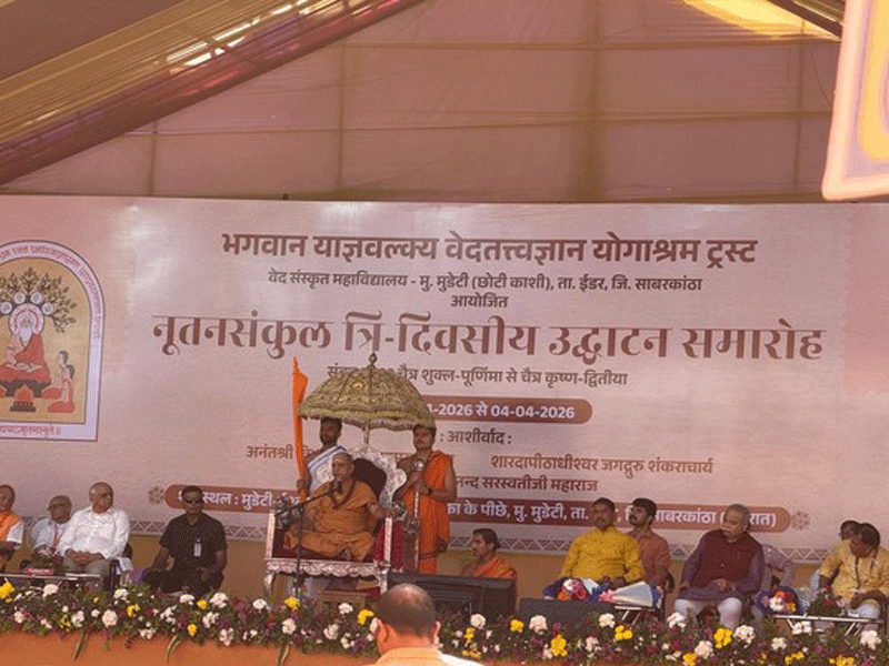 ईडर (साबरकांठा) गुजरात : साबरकांठा जनपद की ईडर तहसील के मुडेटी गांव, जिसे “छोटी काशी” के नाम से जाना जाता है, में आज शनिवार को उस समय आध्यात्मिक और वैदिक चेतना का अद्भुत संगम देखने को मिला जब भगवान याज्ञवल्क्य वेद संस्कृत महाविद्यालय के नूतन संस्कुल का भव्य उद्घाटन संपन्न हुआ। त्रिदिवसीय आयोजन के अंतिम दिन यहां उपस्थित विद्वानों और संतों के बीच काशी की ज्ञान परंपरा का सजीव आभास हुआ।