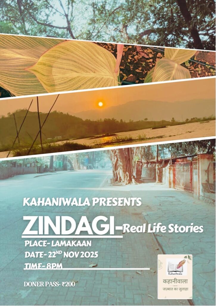 हैदराबाद : कहानीवाला आर्ट्स एंड थिएटर की यह नयी पेशकश है। इसी के अंतर्गत Zindagi @ Kahaniwala (कहानियां ज़िंदगी की…) का मंचन 22 नवंबर को रात 8 बजे ला-मकान बंजारा हिल्स में किया जाएगा। कार्यक्रम के टिकट ला-मकान पर ही उपलब्ध किये जायेंगे। इस मंचन में आठ प्रतिभागी हैं। इस दौरान वो अपने जीवन की सच्ची कहानी सुनायेंगे।