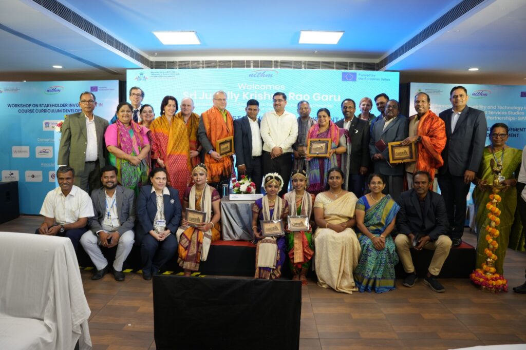 The workshop commenced with a vibrant traditional dance performance by NITHM students, followed by the ceremonial lighting of the lamp by distinguished dignitaries including N. Prakash Reddy, Managing Director of TGTDC; Zendage Hanumant Kondiba, IAS, Director of NITHM; and key representatives from the SIPAS Project consortium across India, Latvia, and Portugal. On this occasion Prof. Balakista Reddy, Chairman of Telangana Council of Higher Education shared the states vision reforming education syllabus.