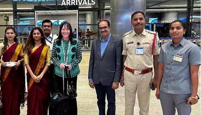 హైదరాబాద్కు చేరుకున్న మిస్ వరల్డ్ లిమిటెడ్ చైర్పర్సన్, అధికారుల ఘన స్వాగతం