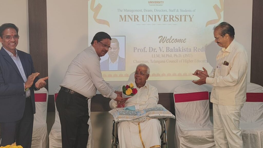 Hyderabad : “Futuristic education should be at the forefront of all universities’ agendas to accelerate India’s development, and all necessary support will be extended to such endeavors,” said Prof. V. Balakista Reddy, Chairman of the Telangana Council of Higher Education, after inaugurating the MNR University’s Central Admissions Office at Y-Junction near the Balanagar Metro Train Station on Sunday.