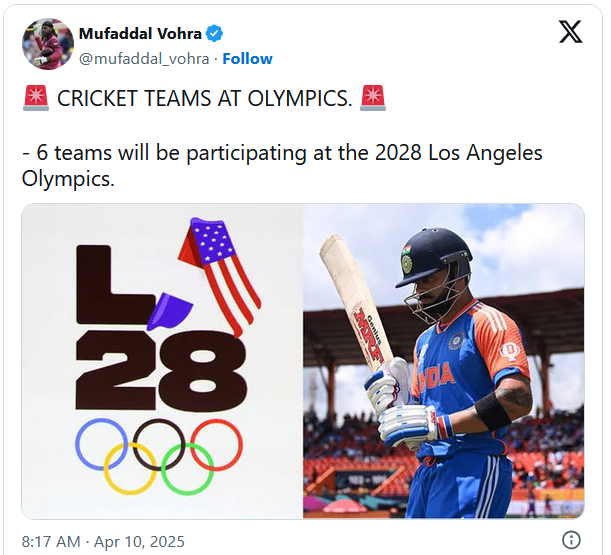 Olympics-2028 : టీ20 ఫార్మాట్లో క్రికెట్, ఆరు జట్లకే అవకాశం