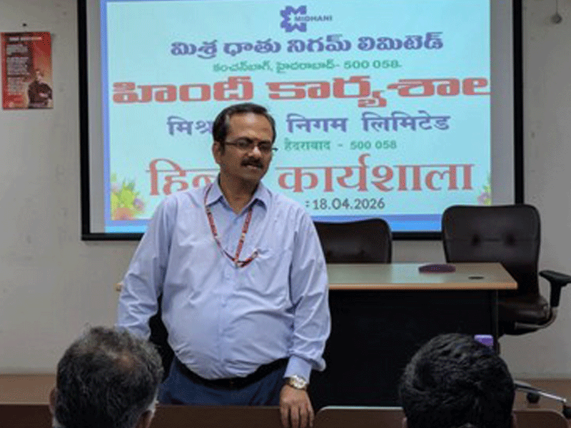 हैदराबाद : भारत के रक्षा उपक्रम मिश्र धातु निगम लिमिटेड (मिधानि) में राजभाषा कार्यान्वयन समिति के तत्वावधान में 18 अप्रैल को उद्यम के वरिष्ठ प्रबंधकों के लिए एक दिवसीय हिंदी कार्यशाला का सफलतापूर्वक आयोजन किया गया। कार्यशाला का संचालन तीन सत्रों में किया गया। इन सत्रों में उद्यम के प्रबंधक (हिंदी अनुभाग एवं निगम संचार) डॉ. बी. बालाजी ने क्रमशः प्रशासनिक शब्दावली, कंप्यूटर पर फोनेटिक आधारित हिंदी टाइपिंग तथा राजभाषा नीति विषयों पर व्याख्यान प्रस्तुत किए।