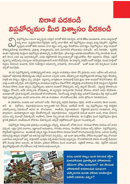 నిజంగానే విప్లవోద్యమం ఏమీ సాధించలేదా? అసలు విప్లవోద్యమం విజయాలనూ, సవాళ్లనూ కలిపి పరిశీలించే అధ్యయన పద్ధతి వీళ్ల దగ్గర ఉన్నదా? విప్లవోద్యమం ఎదుర్కొంటున్న ఇబ్బందులపై ప్రజాస్వామికవాదుల సూచనలను ఎన్నడూ పట్టించుకోలేదా? నిర్బంధం వల్లనే పట్టణ, మైదాన ప్రాంత ప్రజలకు దూరమైందనే సంగతి తెలియదనుకోవాలా?.. హేతుబద్ధంగా, ప్రజాస్వామికంగా చర్చించే సంప్రదాయాన్ని మేధావులు వదిలేసుకొని విప్లవోద్యమ భవిష్యత్తు మీద సందేహాలు లేవదీస్తున్నారు.