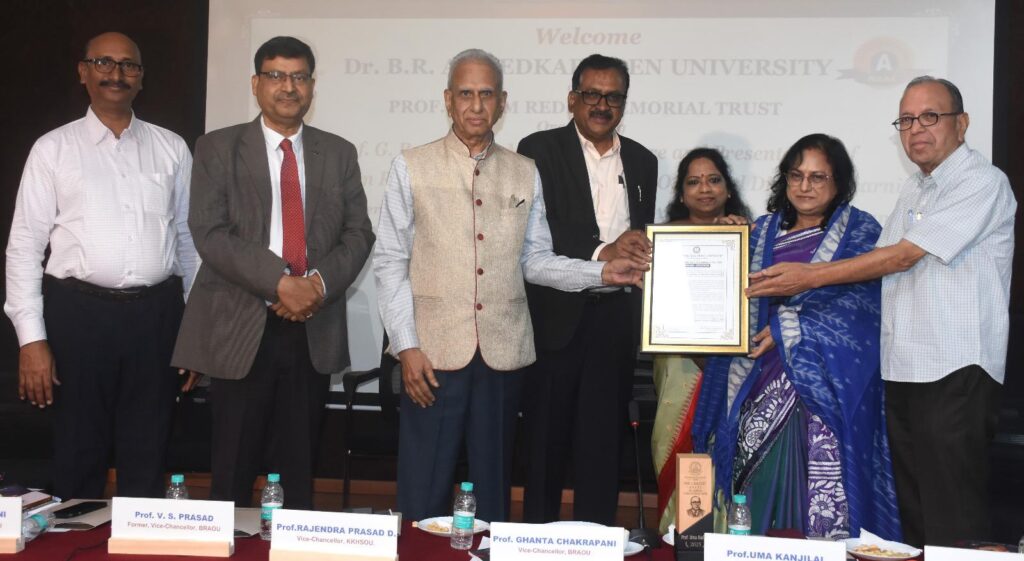 Later, award ceremony organized to conferred Prof. G. Ram Reddy Award for Excellence in Distance Education for the year 2025 for outstanding contribution to the field of Open Distance Learning across the country to Prof. Uma Kanjilal, Vice-Chancellor, Indira Gandhi National Open University (IGNOU). The award recipient Prof.Uma Kanjilal said the award game more responsibility towards commitment to expand ODL system in India. Also she dedicated her award to the students and staff of IGNOU.