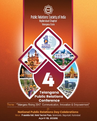 Hyderabad : The Hyderabad Chapter of the Public Relations Society of India (PRSI) will organise the 4th Telangana Public Relations Conference on Sunday, April 19, 2026 at The Plaza, Begumpet, Hyderabad from 9 AM to 6 PM.