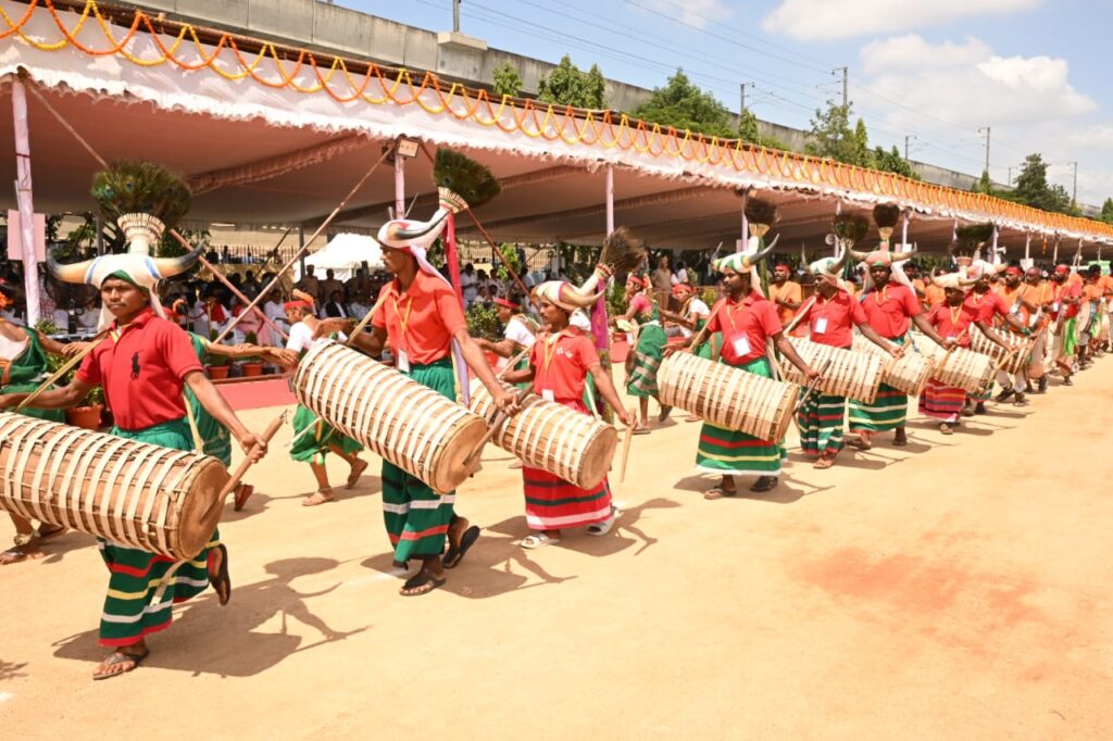 हैदराबाद : 12 वां तेलंगाना स्थापना दिवस समारोह भव्य रूप से मनाया गया। तेलंगाना प्रदेश कांग्रेस समिति के अध्यक्ष महेश कुमार गौड़ ने गांधी भवन में, मुख्यमंत्री रेवंत रेड्डी ने गन पार्क (तेलंगाना शहीद स्तूप) और परेड ग्राउंड में आयोजित समारोह में भाग लिया। दूसरी ओर बीआरएस के कार्यकारी केटीआर ने अमेरिका में और एमएलसी व तेलंगाना जागृति की प्रमुख के कविता ने नये कार्यालय में में तेलंगाना स्थापना दिवस मनाया। आइए इन समारोह की तस्वीरों को देखते हैं।