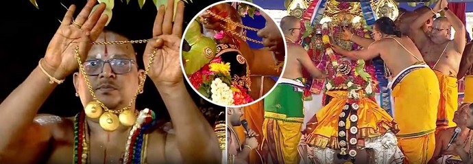 इससे पहले, विश्वक्सेन पूजा और पुण्यहावचन किया गया। भगवान श्रीराम को सीता को सामने बैठाया गया। प्रवरण, मोक्ष बंधन, यज्ञोपवीत, वर पूजा, विशेष सजावट की गई और मधु परकाल को अर्पित किया गया। इस अवसर पर, भक्त रामदास द्वारा बनाया गया पच्चल पदक श्रीराम को और इमली पत्तों का पदक सीता माता को दिया गया। ठीक 12 बजे भक्तों के जय जय के नारों के बीच अभिजीत लग्न मुहुर्त पर शादी की गई।