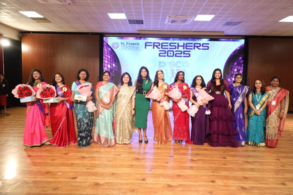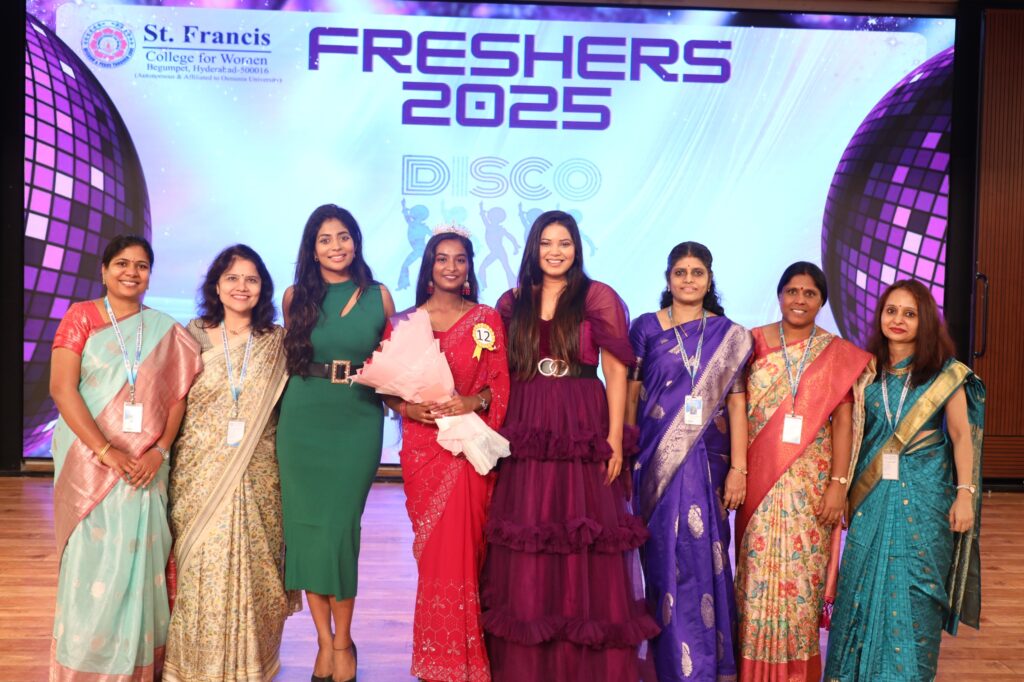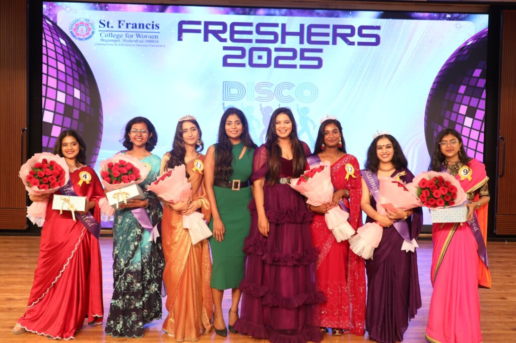 Hyderabad : The St. Francis College for Women, Begumpet celebrates Freshers Party on the 25th of July with a dazzling theme of ‘Disco Deewane’. The event was graced by Ms. Deborah Doris Fell and Ms. Monica Arya Reddy, models cum actors of the Telugu film industry who judged the most anticipated Miss Fresher’s Contest 2025.