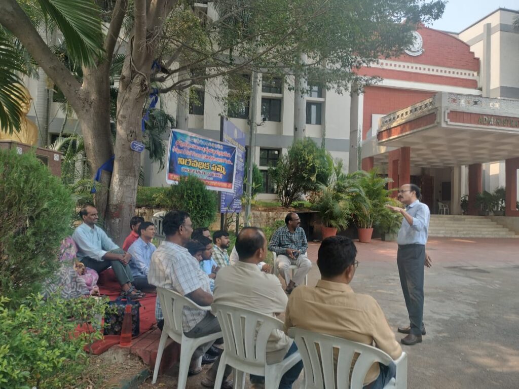 యూనివర్సిటీ ప్రాంగణంలోని అంబెడ్కర్ విగ్రహం వద్ద నిరసన తెలిపారు. అంబెడ్కర్ ఓపెన్ యూనివర్సిటీ ఫాకల్టీ టీచింగ్ అసోసియేషన్ ప్రతినిధులు ప్రో. పీ. వెంకట రమణ, ప్రో. బి. శ్రీనివాస్, ప్రో. జి దయాకర్, ప్రో. రవీంద్రనాథ్ సోలొమన్, ప్రో. చంద్రకళ, ప్రో. కిశోర్ కుమార్ రెడ్డి మద్దతు పలికి మాట్లాడుతూ కాంట్రాక్టు అధ్యాపకుల న్యాయమైన డిమాండ్లను ప్రభుత్వం పరిష్కరించాలని కోరారు.