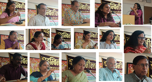 प्रवीण प्रणव एवं डॉ आशा मिश्र ‘मुक्ता’ (संपादक, पुष्पक साहित्यिकी) ने पुष्पक की प्रति डॉ बजाज और डॉ शुक्ल को भेंट की। तत्पश्चात् अनुवादक जी परमेश्वर को भी मंच पर आमंत्रित किया गया और उनके सानिध्य में काव्य गोष्ठी प्रारम्भ की गई। सभी उपस्थित साहित्यकारों ने अपनी श्रेष्ठतम रचनाओं की प्रस्तुती दी।