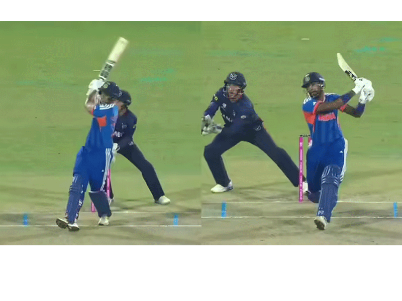 टी20 विश्व कप 2026 में सबसे लंबा छक्का मारने का शिवम दुबे का रिकॉर्ड सिर्फ एक गेंद ही टिक पाया। उन्होंने छक्का मारने के बाद अगली गेंद पर सिंगल लिया। इसके बाद हार्दिक पंड्या स्ट्राइक पर आए। हार्दिक ने बर्नार्ड शोल्ट्ज की गेंद पर लॉन्ग ऑफ के ऊपर से छक्का लगाया। इस छक्के की लंबाई 109 मीटर थी। उन्होंने शिवम दुबे को पछाड़ दिया।