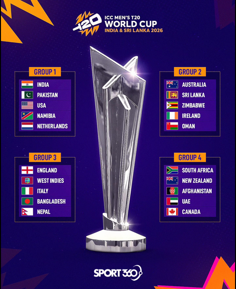 T20 विश्व कप 2026 की टीमें और ग्रुप इस प्रकार हैं-