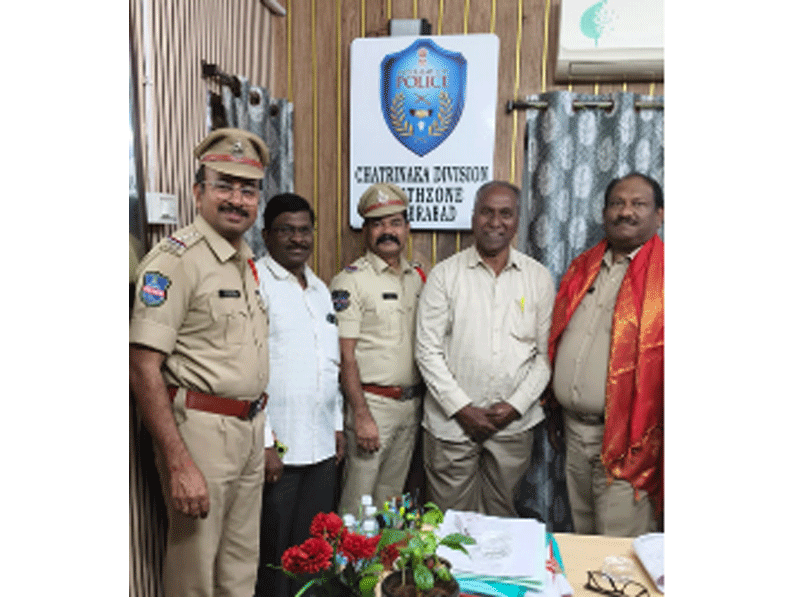 Hyderabad: Every year In the various police staff of Chhatrinaka, Mogalpura, and Shalibanda police stations in the old city, especially Chhatrinaka Division Assistant Commissioner Sri CH Chandrasekhara, are commendable for their tireless efforts to promote peace, communal harmony, and national integration, said Dr. Rajanarayana Mudiraj, President of the Telangana Intellectuals Forum State Branch. In the Chhatrinaka Division ACP office, Mogalpura Inspector C. Seenu, Chhatrinaka Inspector KN Prasad Verma and Shalibanda Police Station Inspector Mahesh Goud.