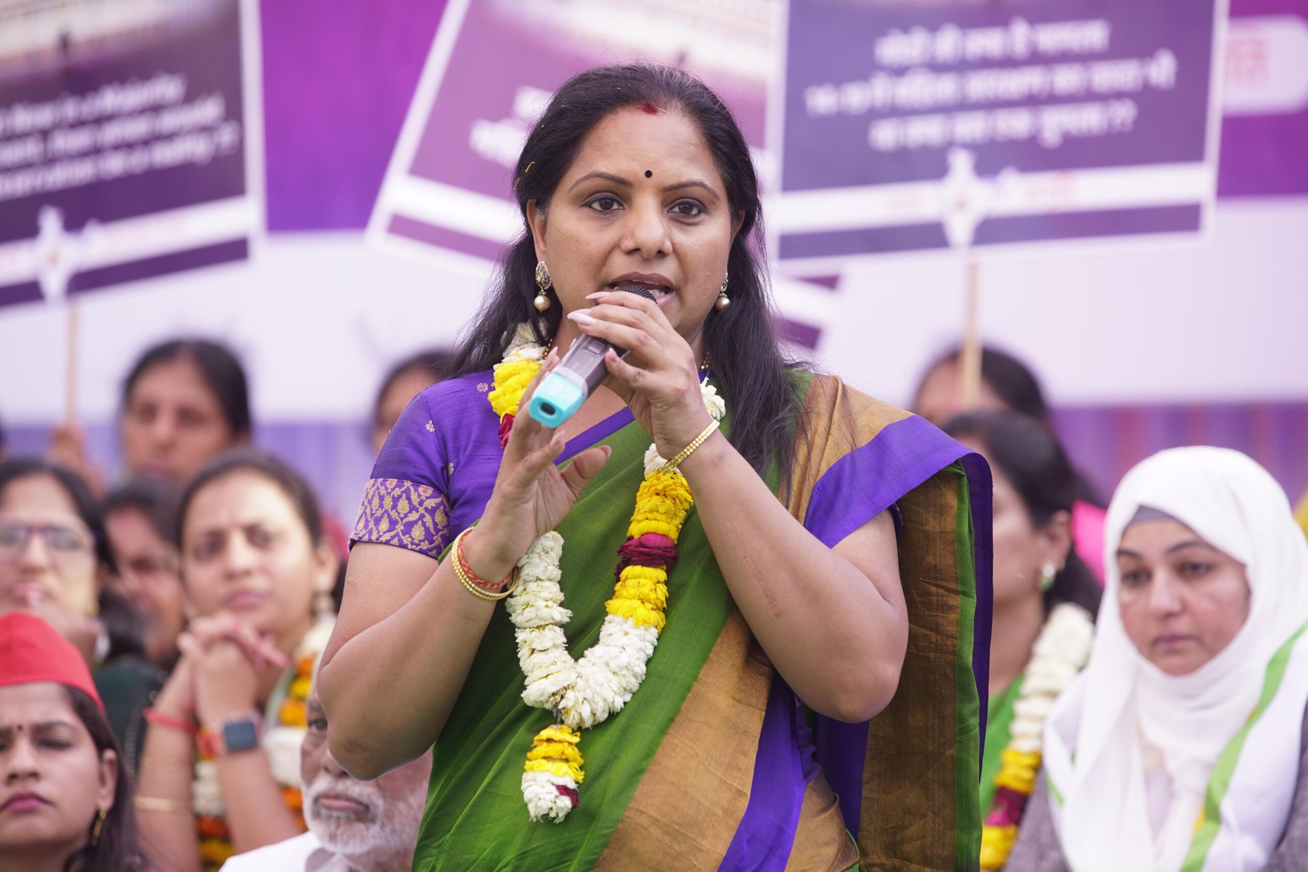 తెలంగాణ జాగృతి అధ్యక్షురాలు కల్వకుంట్ల కవిత చట్టసభల్లో మహిళలకు 33 శాతం రిజర్వేషన్ల కోసం డిల్లీ జంతర్ మంతర్ నిరాహార దీక్ష