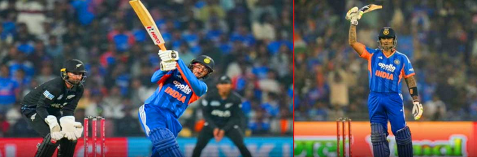 ईशान के आउट होने के बाद अभिषेक को कप्तान सूर्यकुमार यादव का भी साथ मिला। सूर्या ने भी अर्धशतक लगाया। 26व गेंद पर सूर्या ने 57 जबकि अभिषेक ने 20 गेंद पर 68 रन बनाए। अभिषेक ने 7 चौके और 5 छक्के मारे। सूर्या के बल्ले से 6 चौके और तीन छक्के आये। भारतीय पारी में किसी भी ओवर में 10 से कम रन नहीं बने। न्यूजीलैंड के सभी गेंदबाजों ने 14 या उससे ज्यादा की इकोनॉमी से रन दिये।
