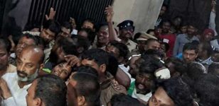 హైదరాబాద్ : కామారెడ్డి జిల్లా కలెక్టరేట్ దగ్గర ఉద్రిక్తత వాతావరణం చోటుచేసుకుంది. కలెక్టరేట్లోకి చొచ్చుకెళ్లేందుకు యత్నించిన బండి సంజయ్, బీజేపీ కార్యకర్తలను పోలీసులు అరెస్టు చేశారు. బండి సంజయ్ను స్టేషన్కు తరలించేందుకు పోలీస్ వాహనంలో ఎక్కించారు. పోలీస్ వాహనంలో తీసుకెళ్లేందుకు ప్రయత్నించడంతో బీజేపీ … Continue reading బండి సంజయ్ అరెస్ట్, కామారెడ్డిలో ఉద్రిక్తత, పోలీస్ వాహనం ధ్వంసం (video)