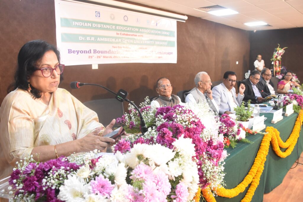 Prof. Uma Kanjilal, Vice Chancellor, IGNOU attended as the Chief Guest for Inaugural Session. Prof. Kanjilal stated that ODL constitutes nearly 50 percent of the Gross Enrollment Ratio (GER) and plays a crucial role in expanding access to higher education. She noted that the NEP 2020 emphasizes strengthening the ODL system to ensure quality education. She highlighted that artificial intelligence (AI) can do wonders, especially in managing large numbers of learners effectively. She described open universities as emerging “agentic AI universities” that integrate skills, competencies, and vocational education.