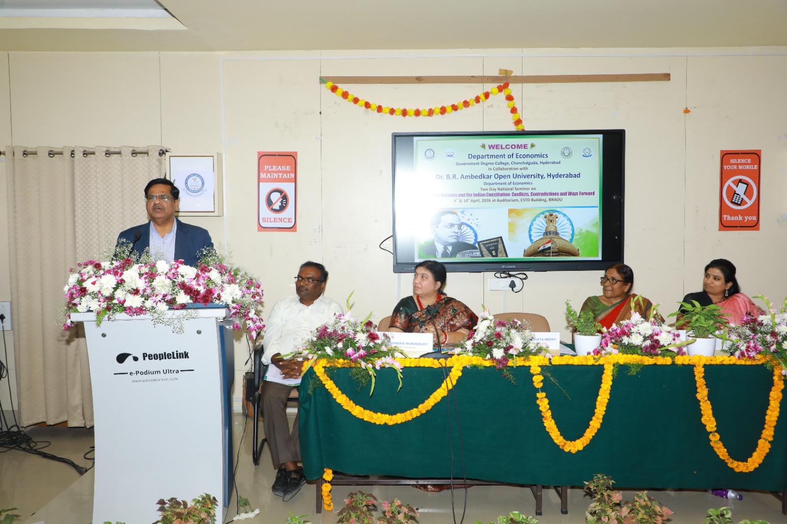 Hyderabad : Dr. B. R. Ambedkar Open University, Department of Economics in collaboration with Government Degree College, Chanchalguda concluded a two-day National Seminar on “Economic Reforms and the Indian Constitution: Conflict, Contradictions, and Ways Forward” as part of “Social Empowerment Week” on Friday.