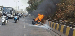माधापुर-दुर्गम चेरुवु केबल ब्रिज पर दो पहिया वाहन में आग लगी, मचा हड़कंप
