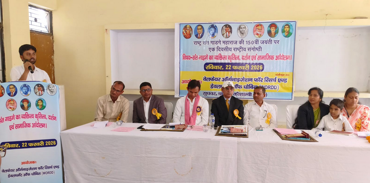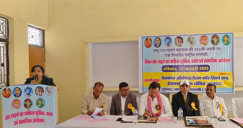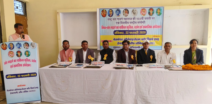 संगोष्ठी के प्रथम सत्र में वक्ताओं ने संत गाडगे महाराज के व्यक्तित्व, सामाजिक आंदोलन और उनके विचारों की वर्तमान प्रासंगिकता पर विस्तार से चर्चा की। दूसरे सत्र में विशिष्ट अतिथि के रूप में लोहिया वाहिनी के प्रदेश अध्यक्ष डॉ. राम करन निर्मल, संस्था के अध्यक्ष डॉ. नरेंद्र दिवाकर एवं ममता दिवाकर मंचासीन रहे। विशिष्ट अतिथि धर्मेंद्र दिवाकर ने कहा कि संत गाडगे महाराज 20वीं सदी के सामाजिक आंदोलनों में अग्रणी भूमिका निभाने वाले महान संत थे, जिन्होंने समाज की बुराइयों के खिलाफ संघर्ष किया और आत्मचिंतन का मार्ग दिखाया। संस्था के सचिव विनोद भास्कर ने संस्था के इतिहास पर प्रकाश डालते हुए बताया कि WORDD की शुरुआत मात्र दस लोगों से हुई थी और आज यह एक सशक्त सामाजिक संगठन के रूप में स्थापित हो चुकी है। उन्होंने बताया कि कोविड काल में संस्था ने बेसहारा और जरूरतमंद लोगों की सहायता कर समाज में सेवा और सहयोग का उदाहरण प्रस्तुत किया। संगोष्ठी के दौरान संत गाडगे महाराज के जीवन पर आधारित गीतों की प्रस्तुति भी की गई, जिससे कार्यक्रम का वातावरण प्रेरणादायक बना रहा।
