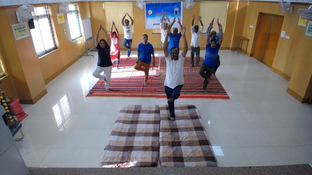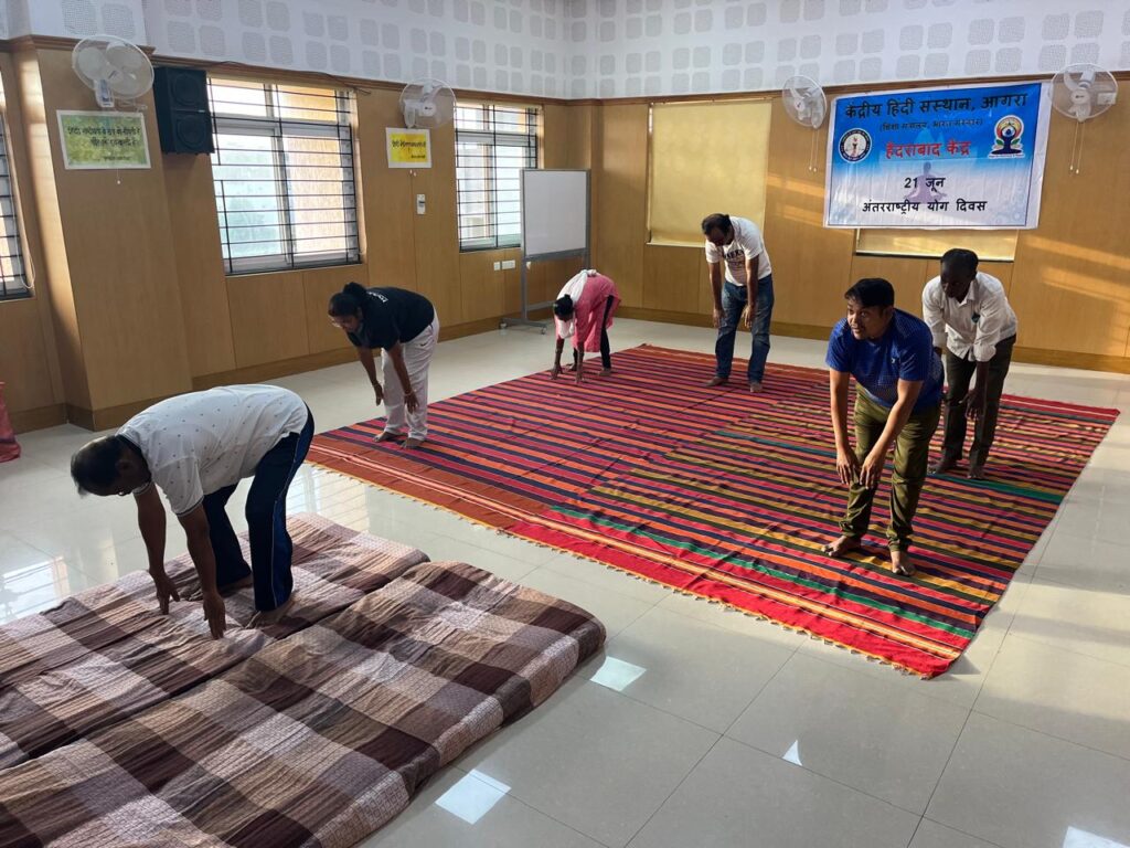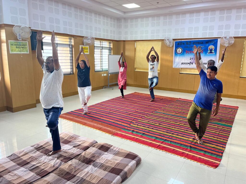 हैदराबाद : 21 जून को केंद्रीय हिंदी संस्थान, आगरा के हैदराबाद केंद्र के बहुउद्देशीय कक्ष में ‘विश्व योग दिवस’ सभी शैक्षिक एवं प्रशासनिक सदस्यों की ओर से हैदराबाद केंद्र के क्षेत्रीय निदेशक प्रो. गंगाधर वानोडे के मार्गदर्शन में मनाया गया।